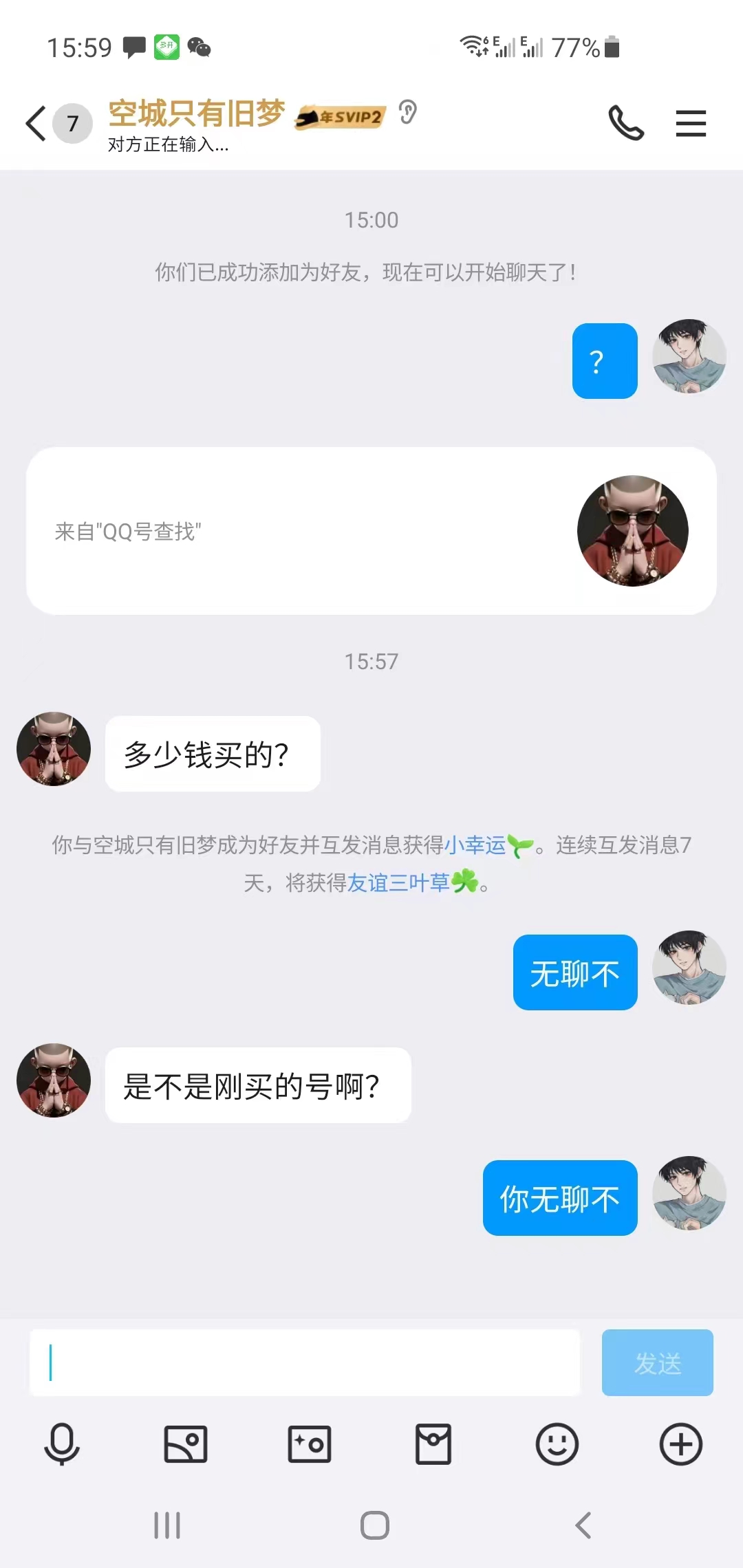 一天,平台用户小张购买了一个6位数的QQ号码,不久后,一个陌生人添加了他的QQ,并自称是原号主。这个人并没有立即表现出恶意,而是与小张套近乎,询问他购买这个QQ号码的价格。在得知价格后,这个人表示自己很后悔出售这个号码,并提出愿意以更高的价格回收。